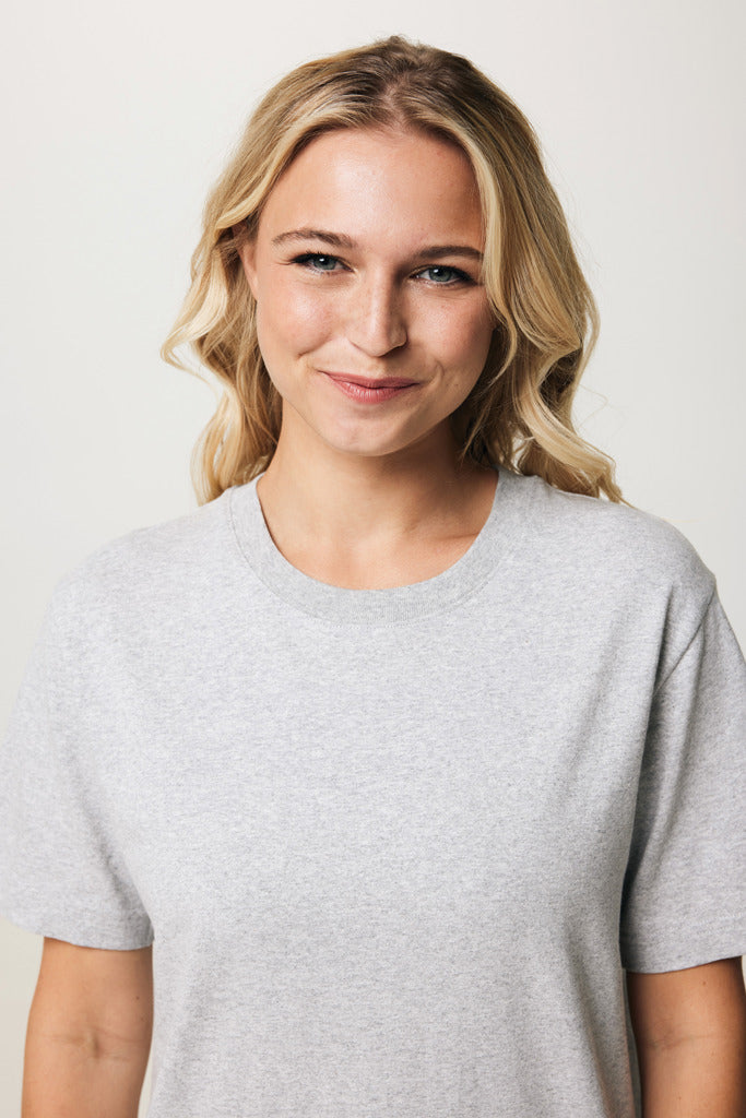 The Kakad t-shirt is a unisex relaxed-fit essential made from 100% cotton, with a 50/50 blend of recycled and organic fibres (180 G/M²). Featuring a soft crew neck, slightly looser fit, and 1x1 rib collar, it's ideal for use as an eco-friendly uniform, sustainable promotional merch, or ethical teamwear.