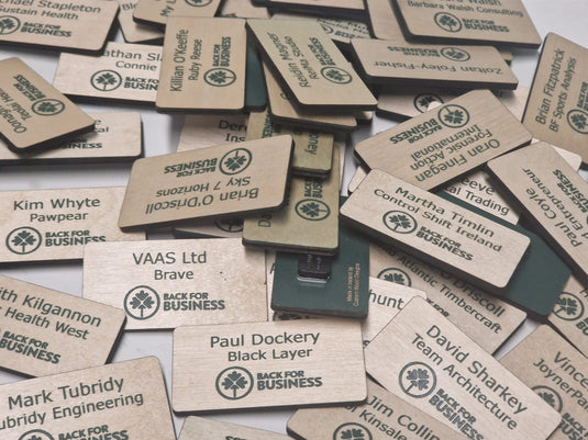 At Custom Wood Designs, we blend cutting-edge technology and time-honoured craftsmanship to create your magnetic wooden badges. Each piece is expertly shaped using state-of-the-art laser and CNC technology, while preserving the traditional charm of wooden designs.