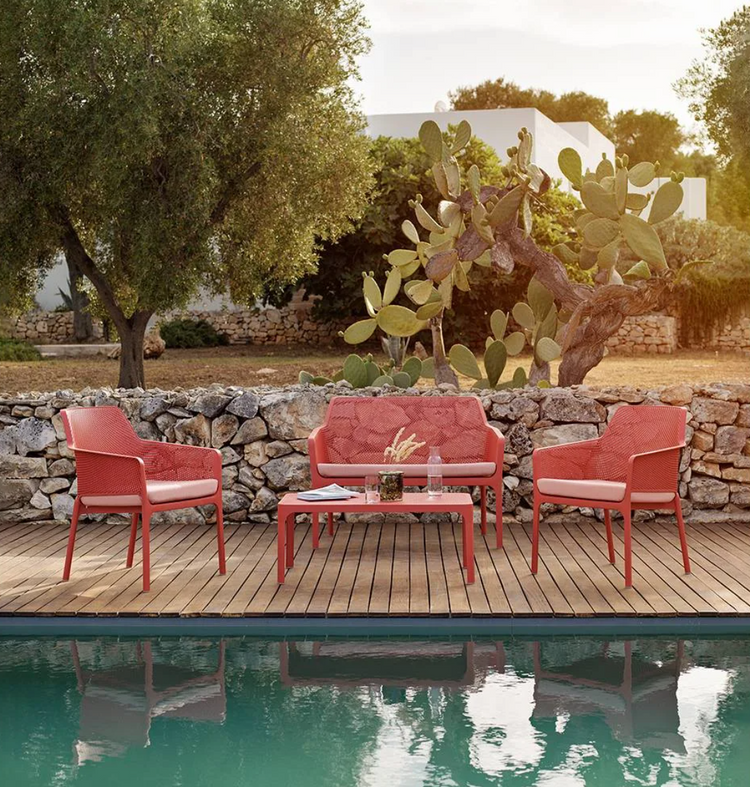 From sleek modern to warm Mediterranean, Nardi chairs and tables are available in colours like taupe, white, green, terracotta, and more.